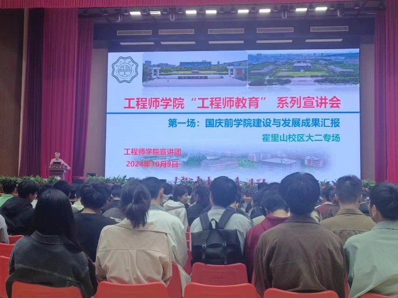 为提升我校学生对工程师职业的认知,帮助他们深入了解行业发展前景和技能需求,明确职业规划,同时通过介绍校企合作模式和创新教育理念,激发学生的实践能力与创新意识,促进校企深度融合,增强学生就业竞争力,为未来工程师人才的培养奠定坚实基础。依据市人社局统一部署,创新与产业工程师学院在10月9日和10晚分别在霍里山校区体育馆和郑蒲港校区操场成功举办了“工程师教育”系列宣讲会的第一讲:2024年国庆前工程师学院建设进展。宣讲团由创新与产业工程师学院院长朱昌平担任团长,副院长黄昭明、副院长助理陶彬彬及各创新工程实践实验室负责同学参与,面向工程师学院19个试点专业大一至大四学生进行了四场专场宣讲,吸引了近万名学生参加。