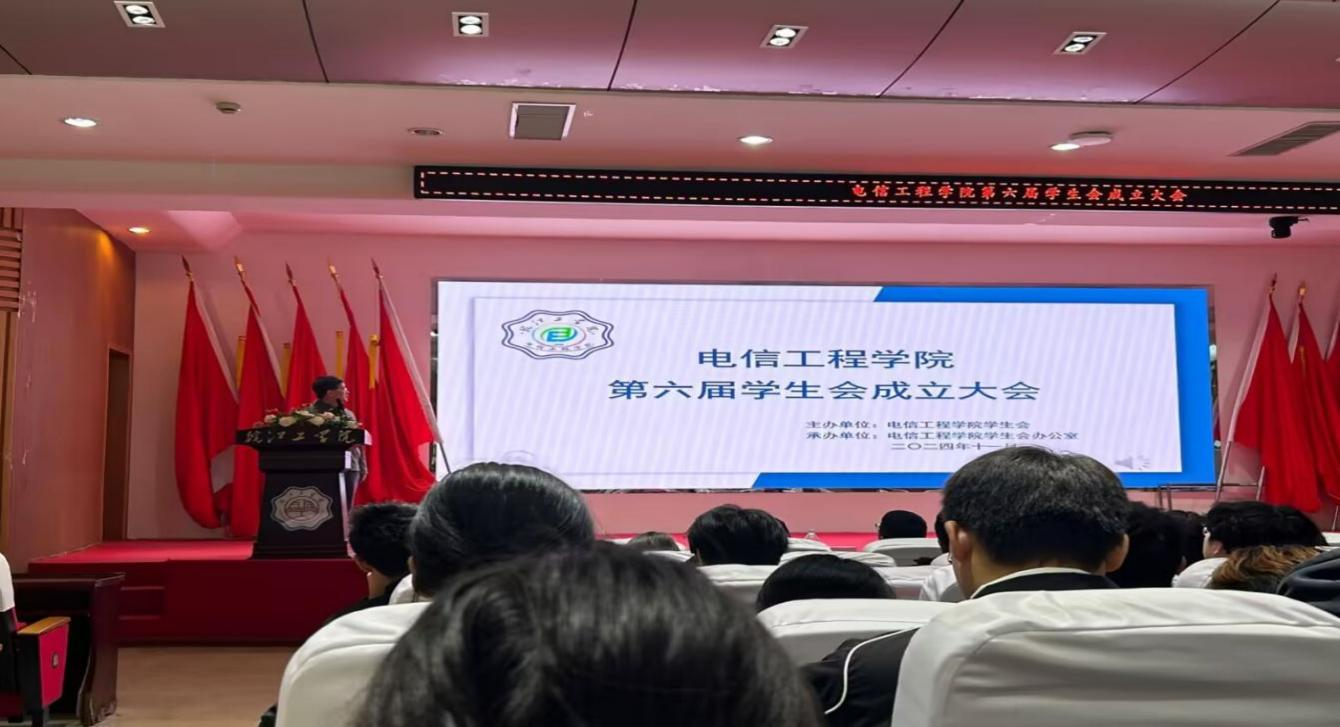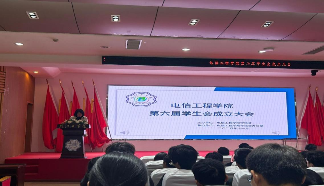 2024年11月22日下午13点,电信工程学院第六届学生会成立大会在华体汇apk霍里山校区图书馆报告厅隆重举行。电信工程学院党总支书记张捍东、院党总支副书记马羽佳、副院长纪萍、院党政办主任张高桢、院分团委书记蒋紫姻、各专业辅导员、班主任及学生会全体成员参加此次会议,本次会议由学生书记张智淘主持。