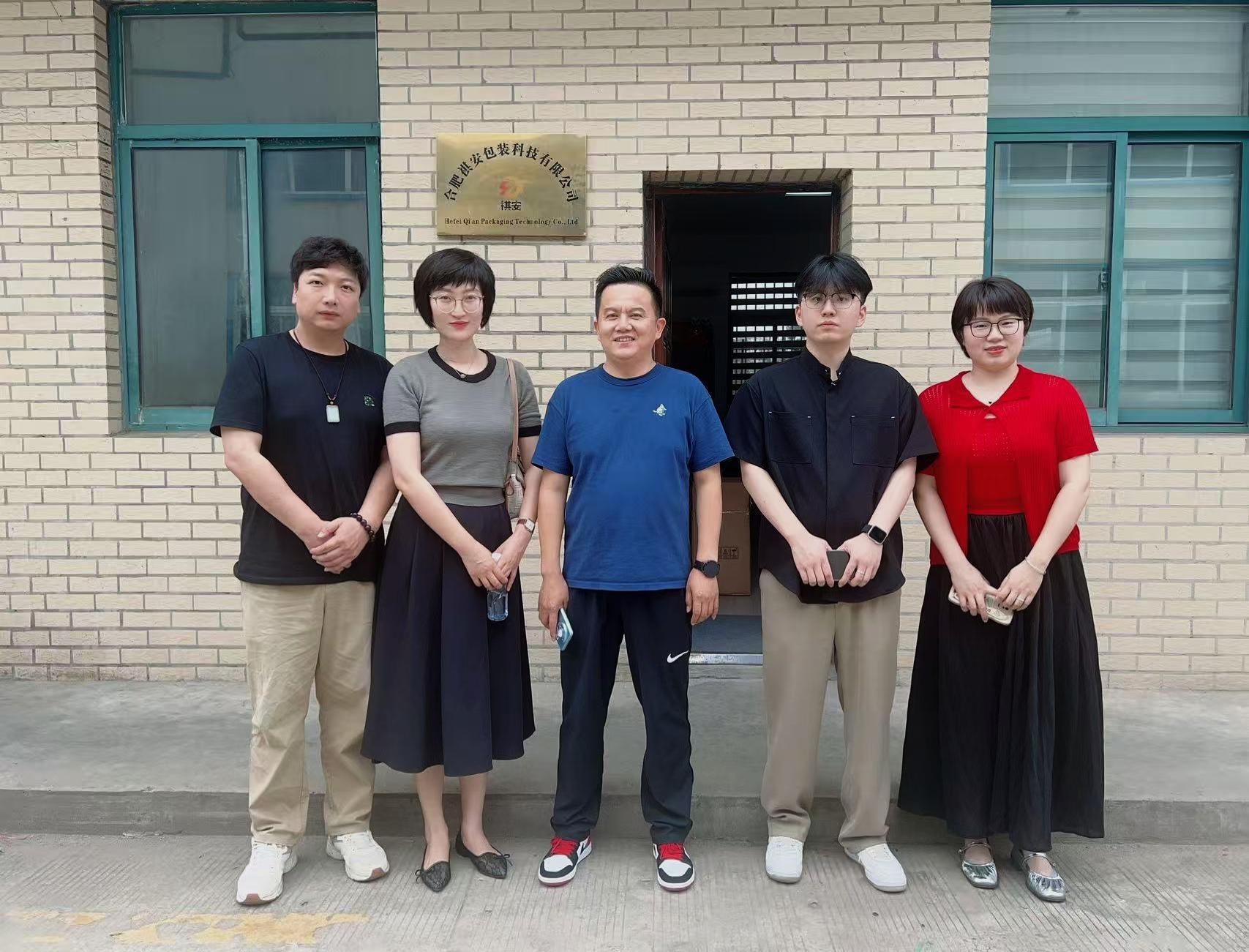 走访19级环境设计专业校友孟云龙所在的合肥祺安包装科技有限公司时,程楠楠副书记一行听取了企业发展历程,参观了产品生产车间,深入了解印刷制作工艺,孟云龙介绍了企业目前对毕业生的专业需求,并提出课程培养环节的意见和建议。