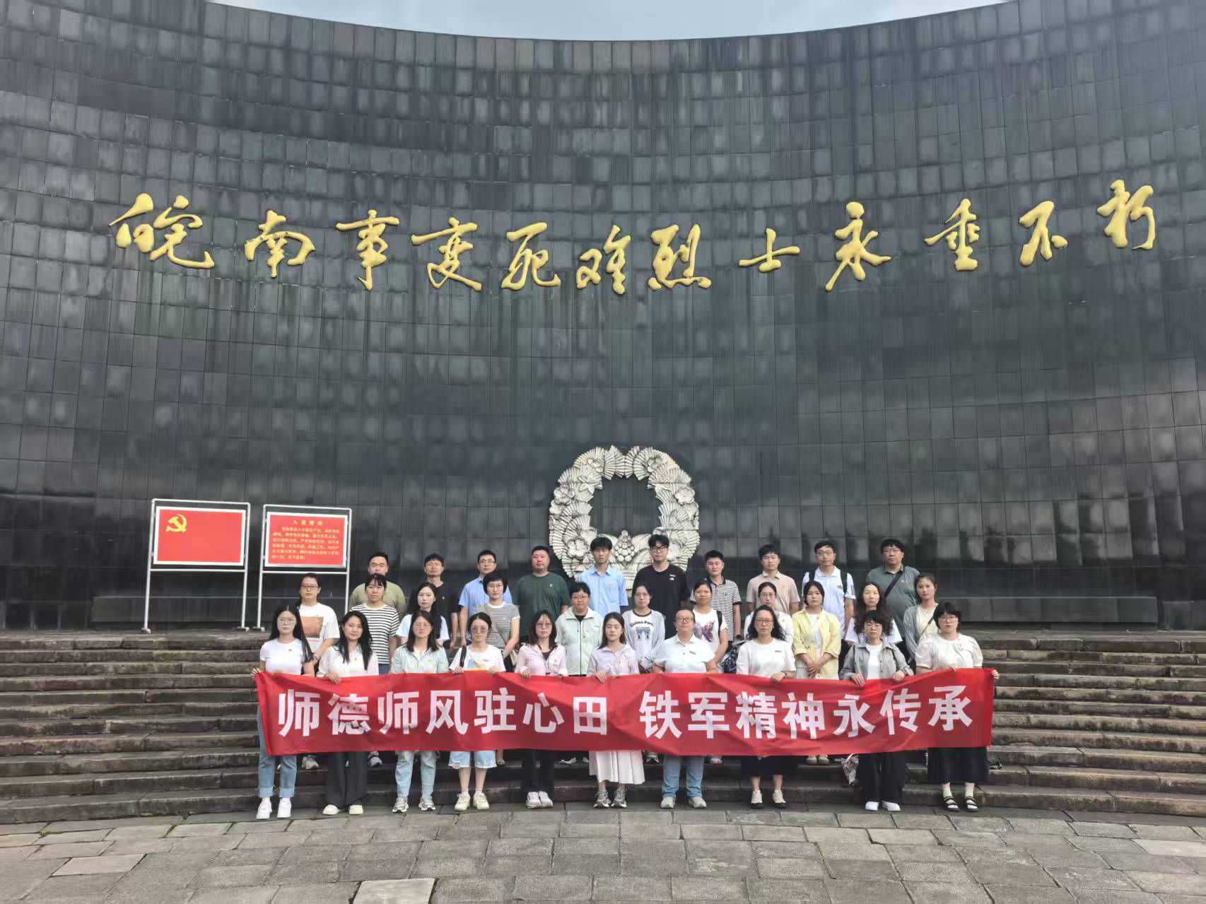 全体教师首先怀着无比崇敬的心情走进庄严肃穆的皖南事变烈士陵园,在巍峨的纪念碑前,教师们肃立默哀,深切缅怀为民族独立和人民解放事业英勇献身的革命先烈,青松翠柏间,历史无声诉说,革命先辈们坚定的理想信念与无畏的牺牲精神深深震撼着每一位在场教师的心灵。参观结束后,全体人员在陵园内合影留念,将这份对历史的铭记与对先烈的敬仰定格。