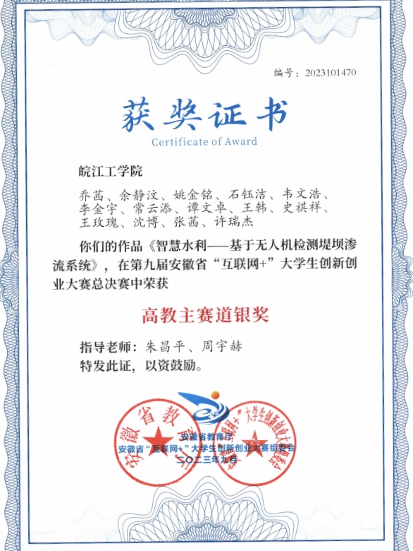 | 华体汇apk | 智慧水利一基千无人机检测堤坝渗流系统 | 乔茜 | 朱昌平、周宇赫 | 二等奖 |