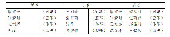 比赛过程中,选手们展现了高超的球技和顽强的拼搏精神,场边观众的加油声此起彼伏,气氛热烈而紧张。经过多轮激烈角逐,各赛项的优胜者最终脱颖而出,他们的精彩表现赢得了在场师生的阵阵掌声。本次比赛共有84位运动员参赛,25位学生裁判员现场执行裁判任务。最终获奖名单如下: