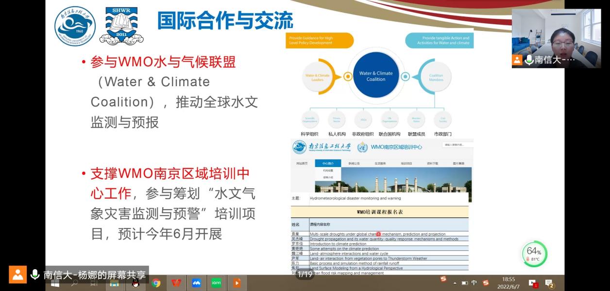 对于南京信息工程大学的国际交流方面,杨娜院长以短视频的形式展现出雄厚的科研实力,无论在WMO水与气候联盟的合作还是WMO南京区域培训中心的参与筹划上,南信大都作出了先锋作用,以推动全球水文监测预报的精确度和气象灾害、气象预警的灵敏性。