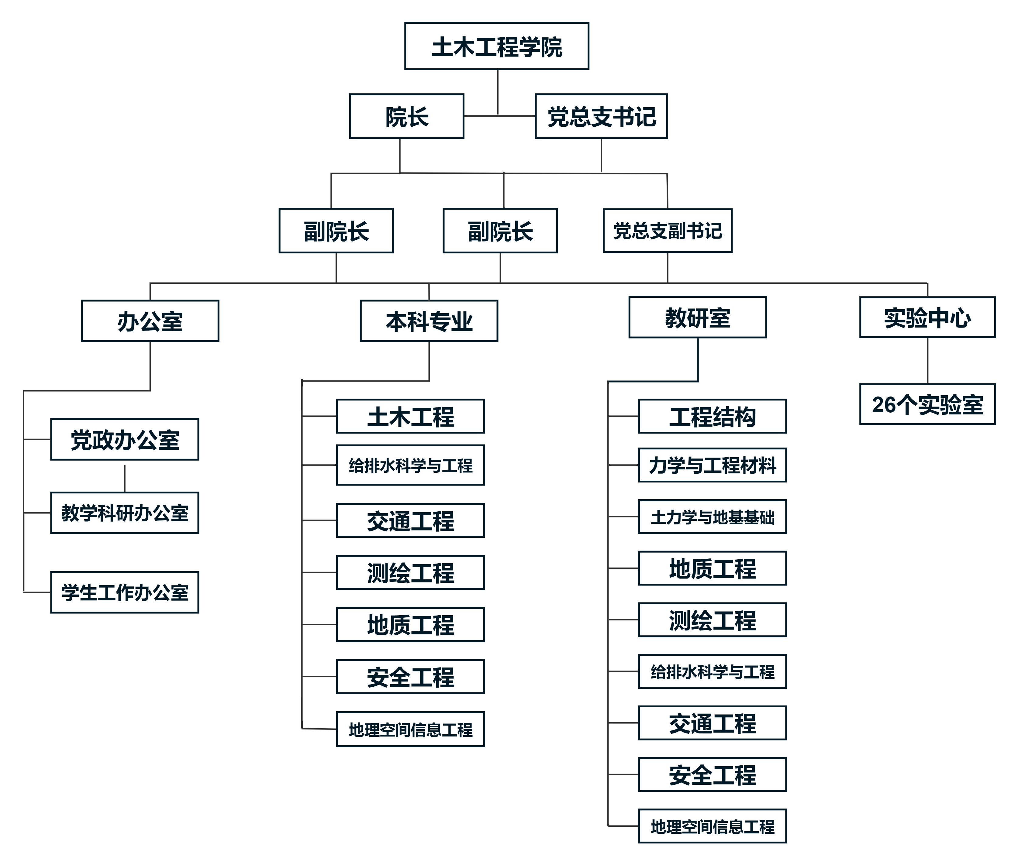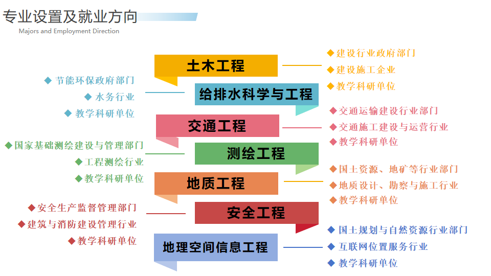 土木工程学院成立于2018年5月,现有土木工程专业、给排水科学与工程专业、交通工程专业、测绘工程专业、地质工程专业、安全工程专业以及地理空间信息工程专业7个本科专业。