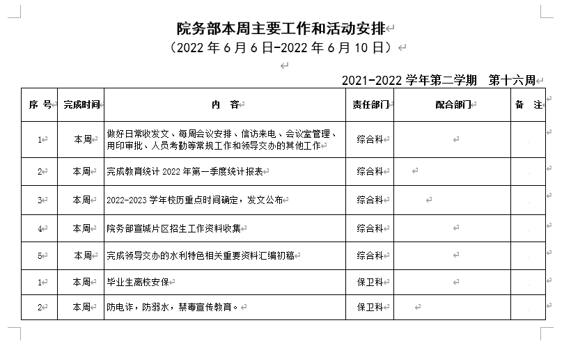 华体汇apk院务部第十六周工作安排